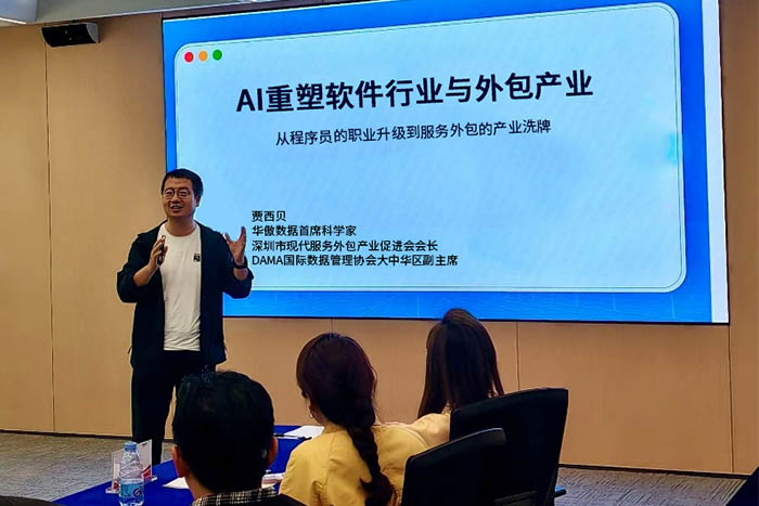 华傲数据首席科学家贾西贝博士做了“AI重塑软件行业与外部产业,从程序员的职业升级到服务外包的产业洗牌”的主题分享,详细介绍了一下5个方面:1、AI对程序员有何影响?2、程序员如何应对AI变革?3、AI对软件产业有何影响?4、AI对服务外包产业(BPO/ITO)有何影响?5、软件及外包产业如何应对AI影响?最后强调,必须拥抱智能时代,必须关注软件产业的Token经济学。